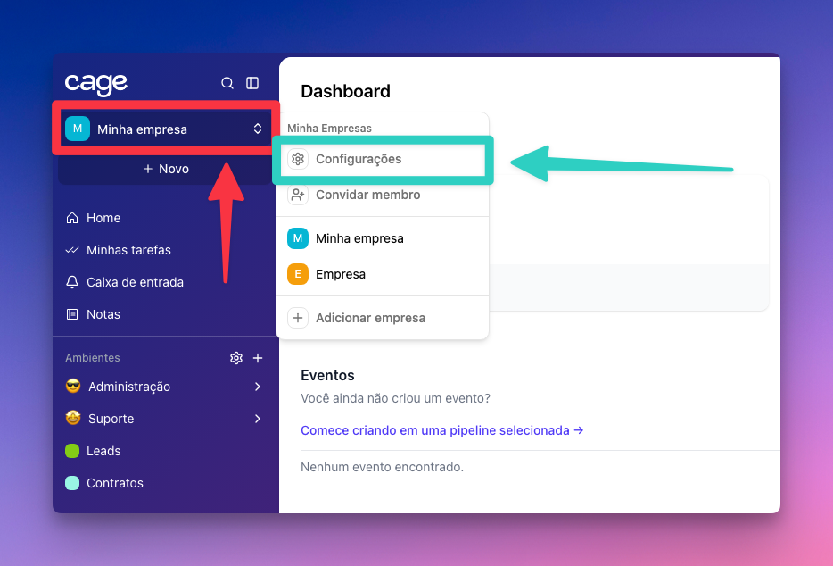 ⚠️Caso ainda não saiba como criar sua Empresa, leia este artigo: 💼 Como criar minha empresa no Cage! (Colocar link do artigo)