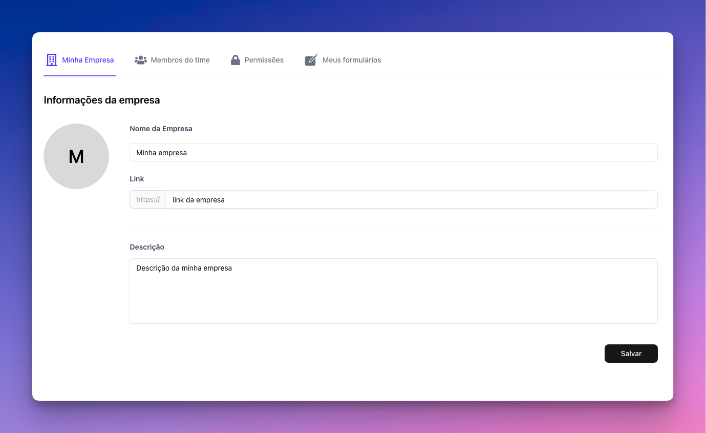 🔧 Configurações da sua empresa!